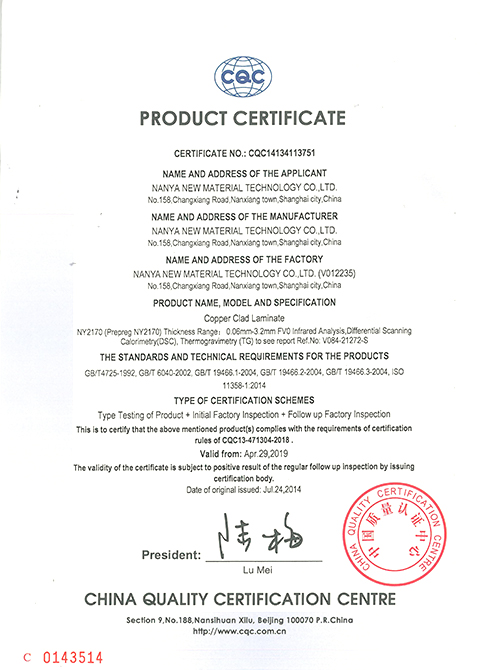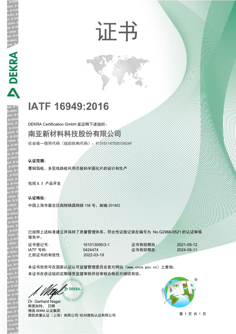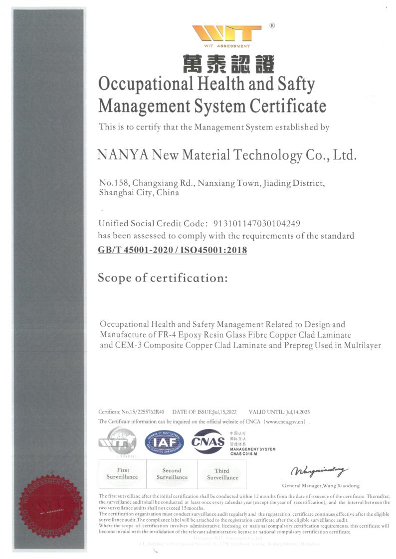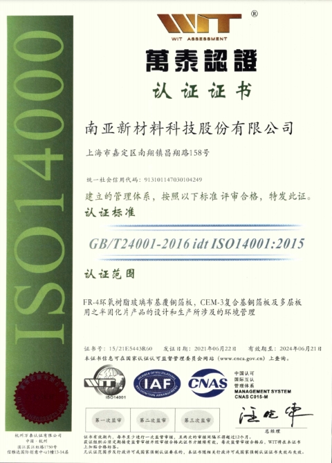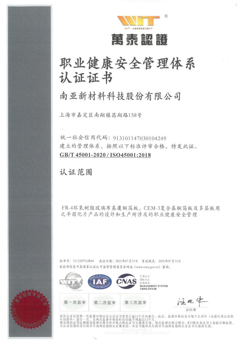 南亚新材始终坚持质量就是生命,持续不断的改进生产技术和服务水平,不断完善质量管理体系,务求满足并超越不同客户的要求和期望;经过不懈的努力,公司先后通过了ISO9001质量管理体系、 ISO14001环境管理体系和ISO45001职业健康安全管理体系的认证及改版升级。