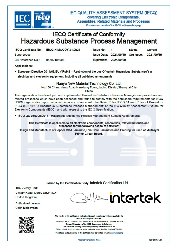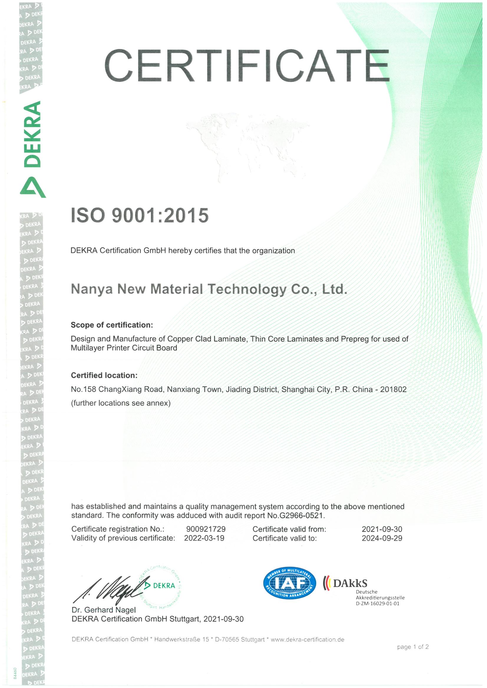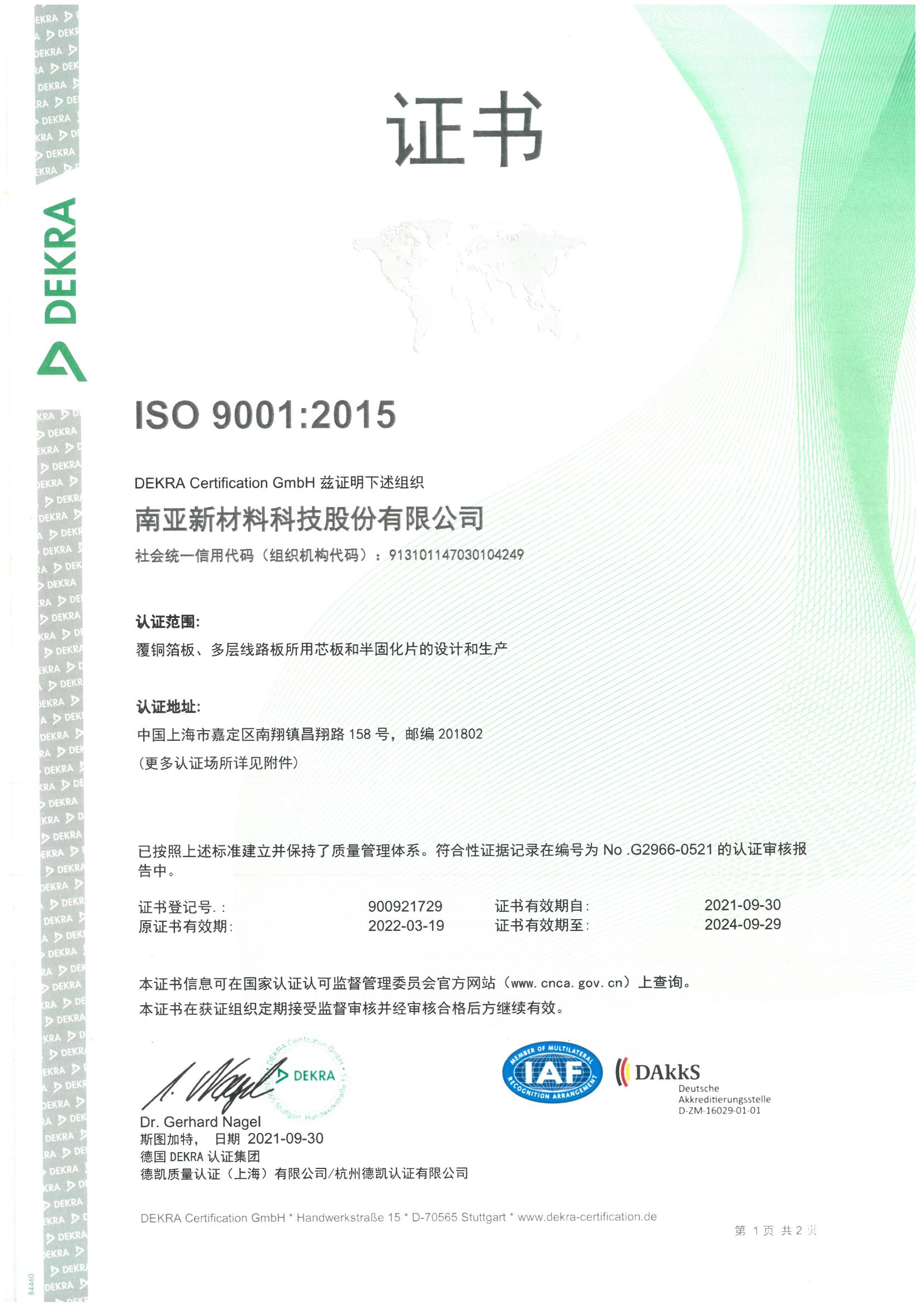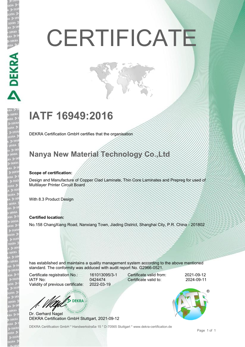 南亚新材始终坚持质量就是生命,持续不断的改进生产技术和服务水平,不断完善质量管理体系,务求满足并超越不同客户的要求和期望;经过不懈的努力,公司先后通过了ISO9001质量管理体系、 ISO14001环境管理体系和ISO45001职业健康安全管理体系的认证及改版升级。